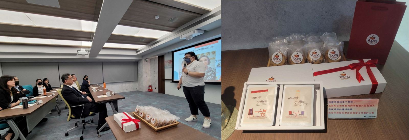 促進對失智症的了解並推動尊重與支持失智症患者的職場。 採購年輕型失智朋友於「Young Coffee記憶會館」製作的餅乾與咖啡,表達支持與關懷。