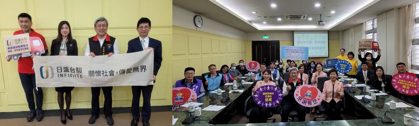 - 2023年3月 日盛台駿國際租賃公司與幸福天使促進協會、鼎興開發貿易公司、國際崇她社等單位共同合作捐贈300套衛浴設備給花蓮弱勢機構,獲花蓮縣政府表揚。