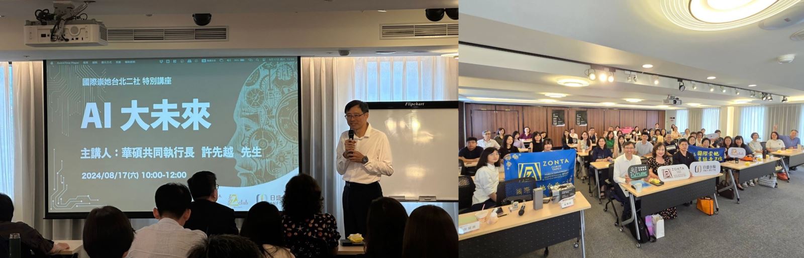 - 2024年8月 與國際崇她台北二社及晨曦青年社共同舉辦AI大未來講座,分享最新趨勢